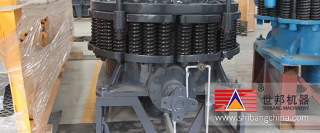 彈簧破碎機(ji)工作時,電動(dong)(dong)機(ji)通(tong)過水平軸(zhou)(zhou)和一對傘齒輪(lun)帶動(dong)(dong)偏心(xin)軸(zhou)(zhou)套(tao)旋(xuan)轉(zhuan),破碎圓錐軸(zhou)(zhou)心(xin)線在偏心(xin)軸(zhou)(zhou)套(tao)的(de)迫動(dong)(dong)下做旋(xuan)擺(bai)運動(dong)(dong),使(shi)得破碎壁表面時而(er)靠近又時而(er)離(li)開軋臼(jiu)壁的(de)表面,從而(er)使(shi)礦石在破碎腔內不斷(duan)地受到擠壓和彎曲而(er)被破碎。